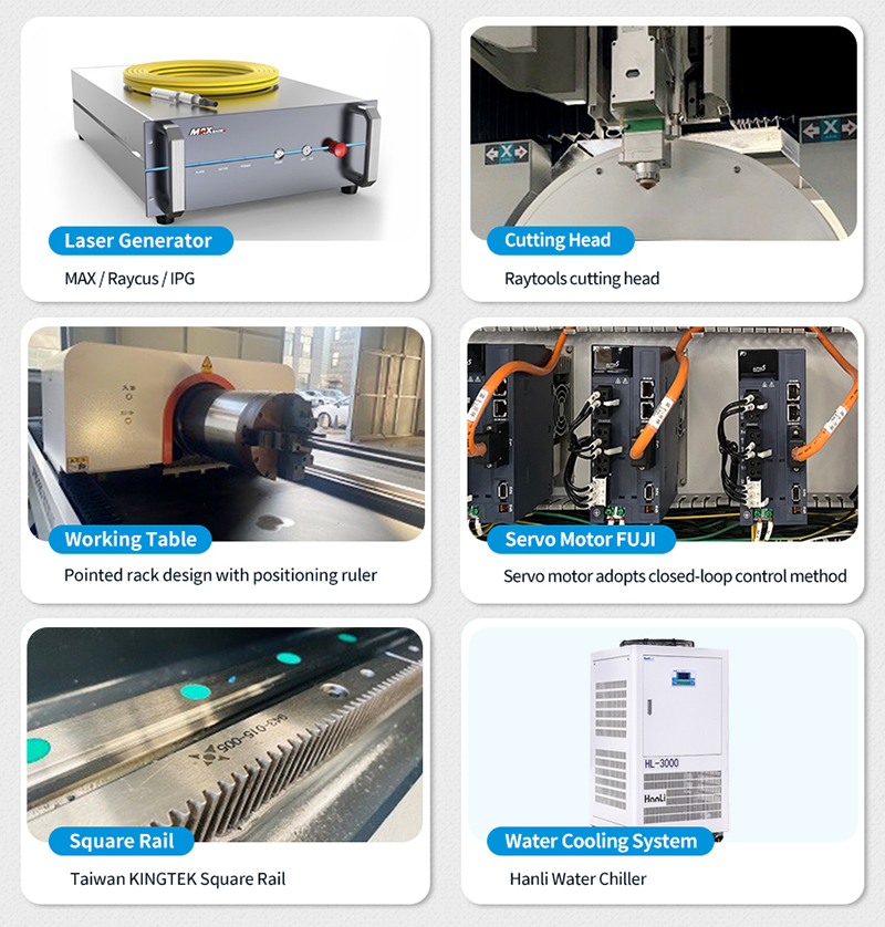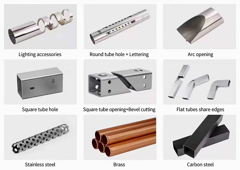 Máy cắt Laser ống chủ yếu được sử dụng để cắt thép carbon, thép không gỉ, đồng, nhôm và các vật liệu kim loại khác. Nó có thể xử lý các ống tròn, vuông, hình chữ nhật, hình bầu dục và các ống có hình dạng đặc biệt khác. Nó sử dụng mâm cặp khí nén kép cấp chính xác, tự động định vị trung tâm và được trang bị hệ thống giảm tốc servo có độ chính xác cao. Các thiết bị cắt vát và xếp dỡ tự động là tùy chọn để tiết kiệm chi phí lao động và nâng cao hiệu quả cắt.